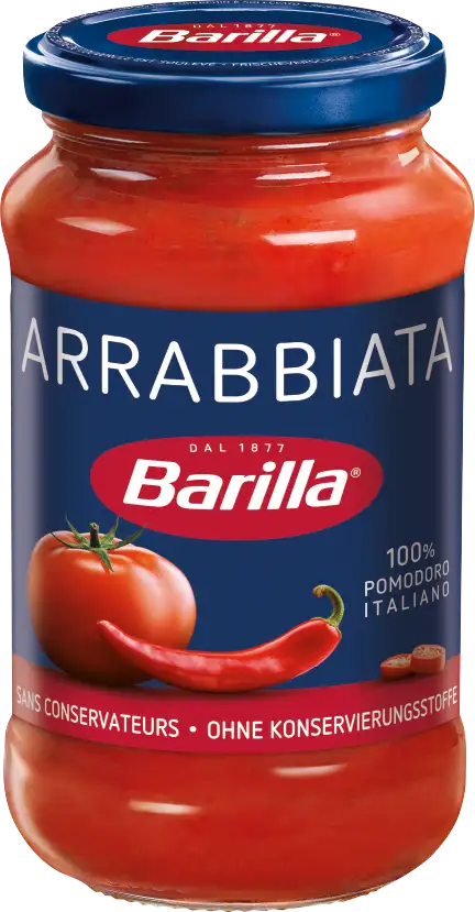 El placer picante de la guindilla calienta los dulces tomates dátil, cultivados bajo el sol de los campos italianos para Barilla. Es la salsa all'arrabbiata, preparada como dicta la tradición,sin añadir conservantes, lista para aportar a su pasta un carácter fuerte y decidido.